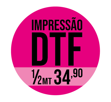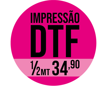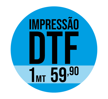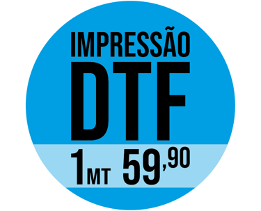 Nossa impressão padrão DTF por metro possui uma largura útil de impressão de 56 cm (em um filme de 60 cm de largura total). Este é o padrão mais eficiente do mercado. O comprimento é ajustado de acordo com a sua necessidade de metros lineares.