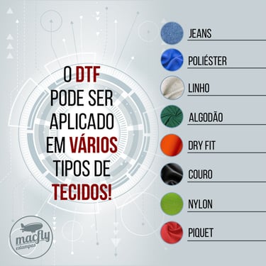 Versatilidade: Estampe em diversos tipos de tecidos, como algodão, poliéster, misturas e muito mais!