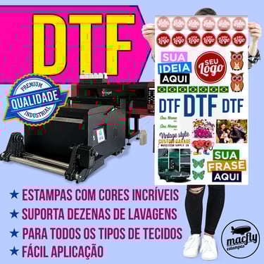 Não tenha limitações na hora de personalizar suas peças! Apresentamos a solução perfeita para você: Estampas DTF (Direct to Film) por metro!